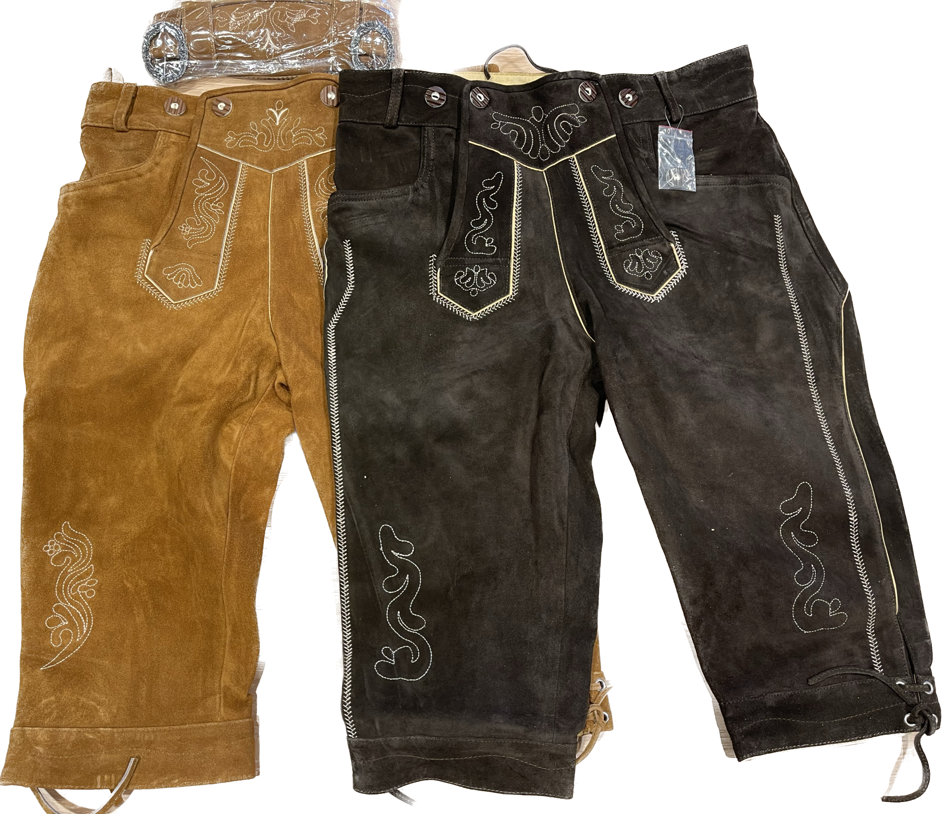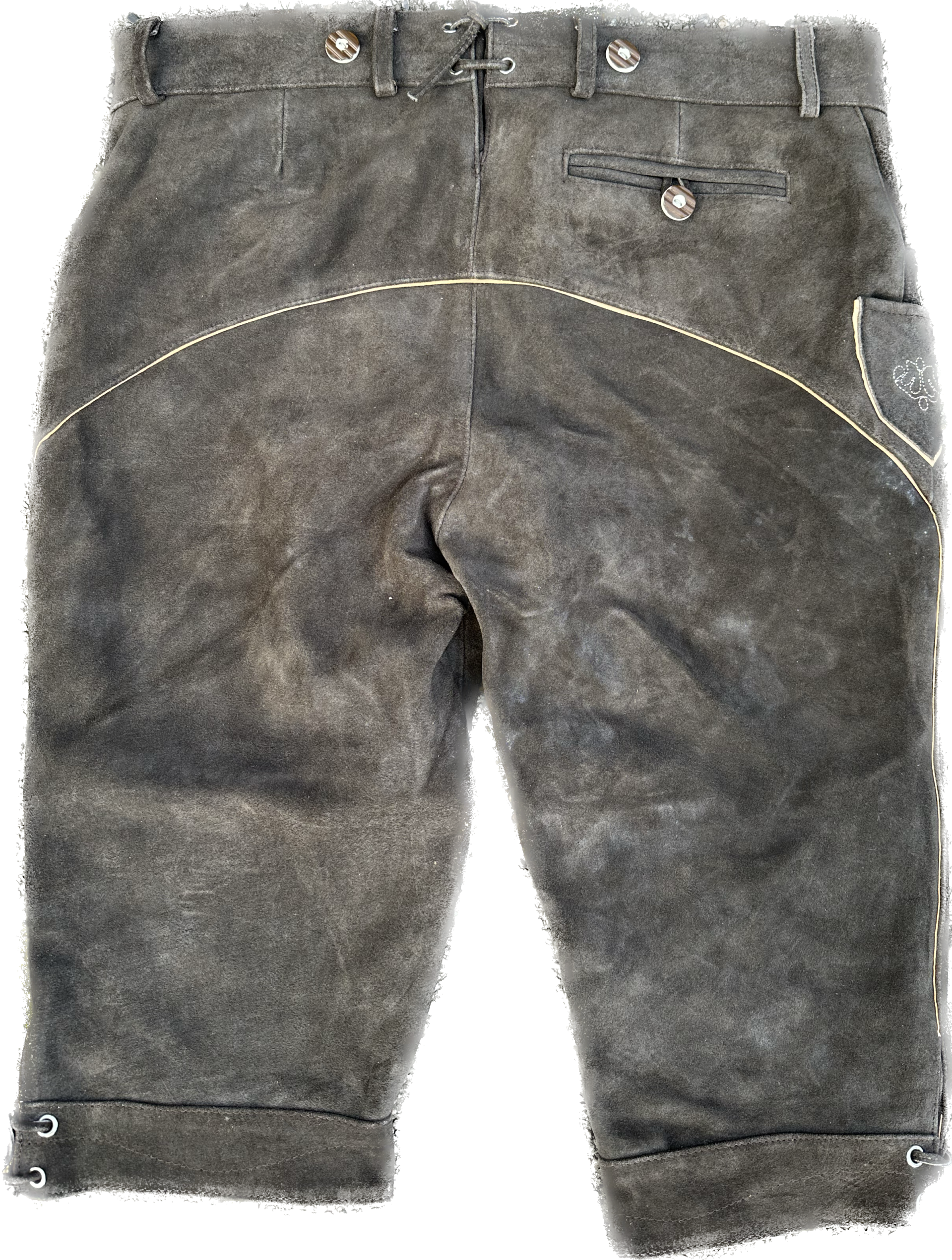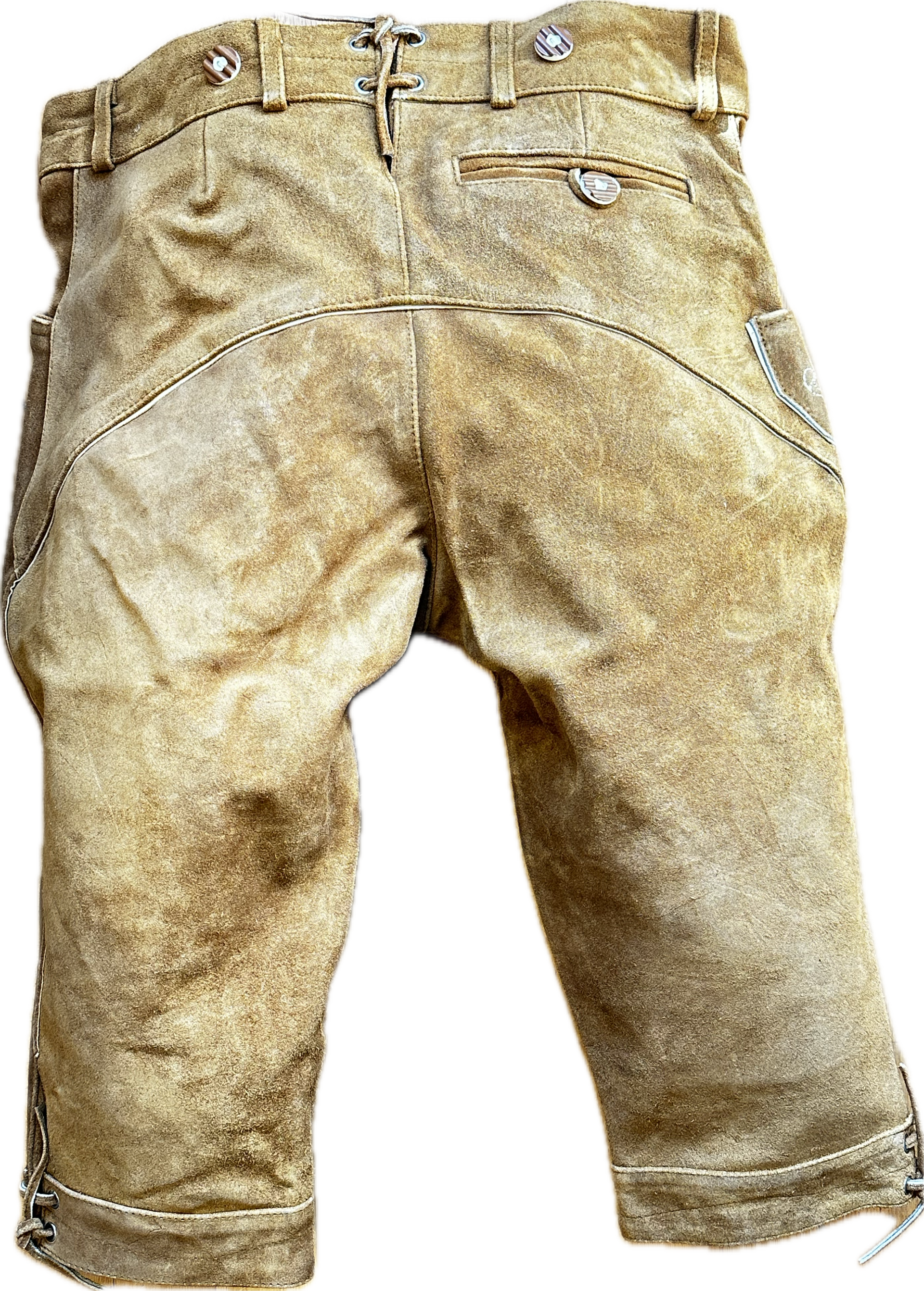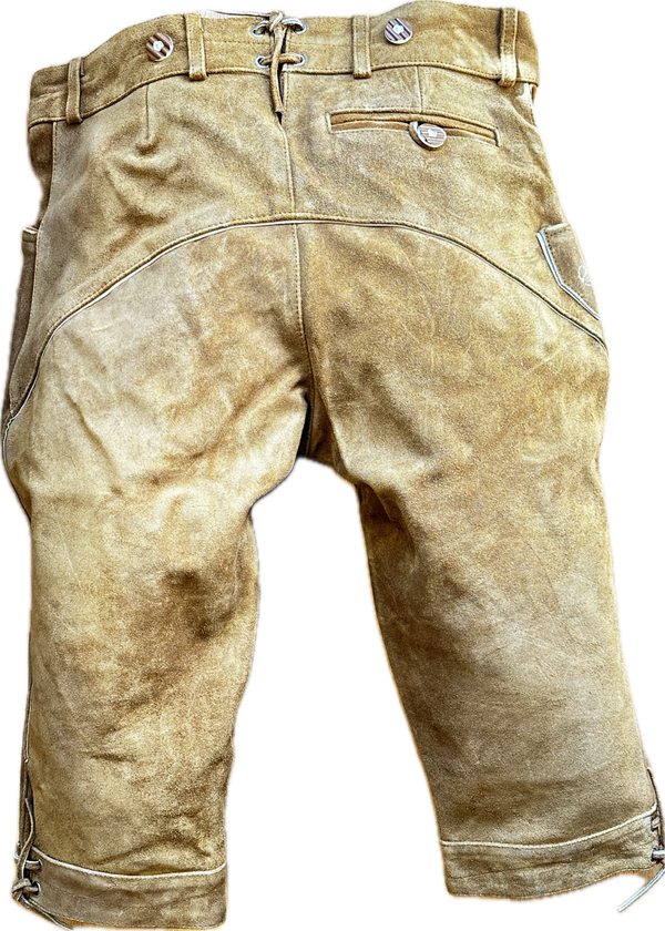 lederhose zijn verstelbaar qua omvang dmv een veter aan achterzijde.